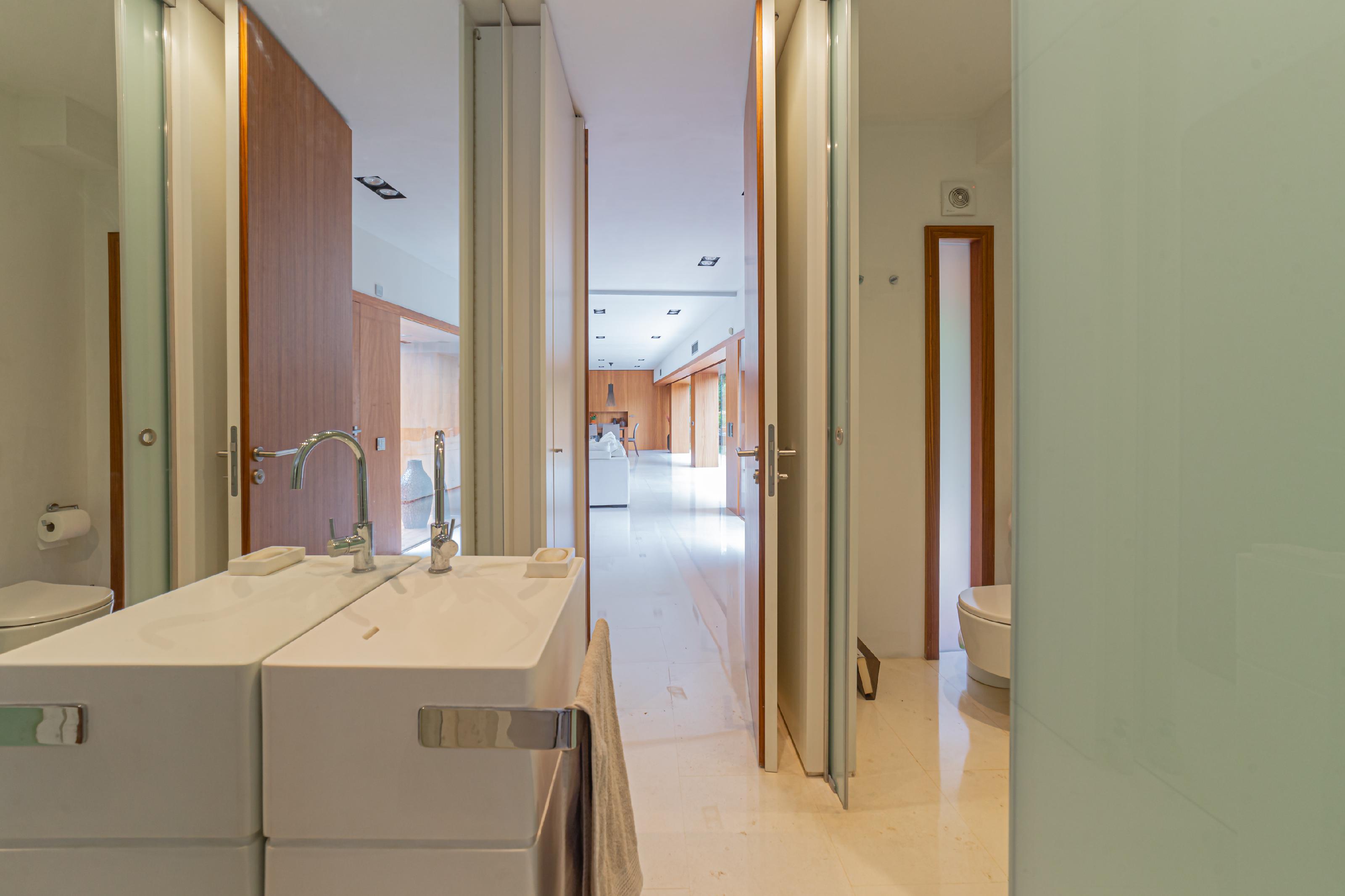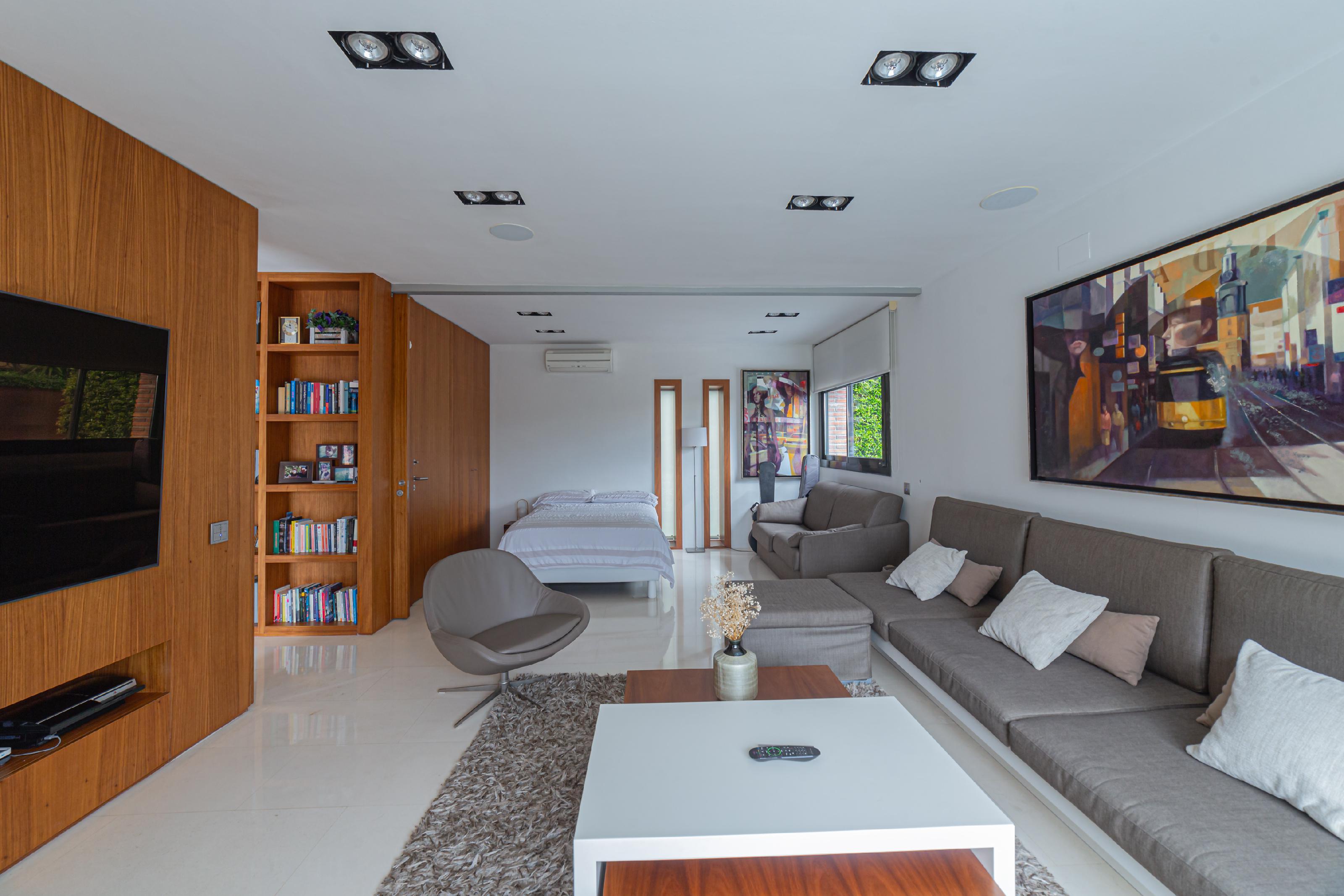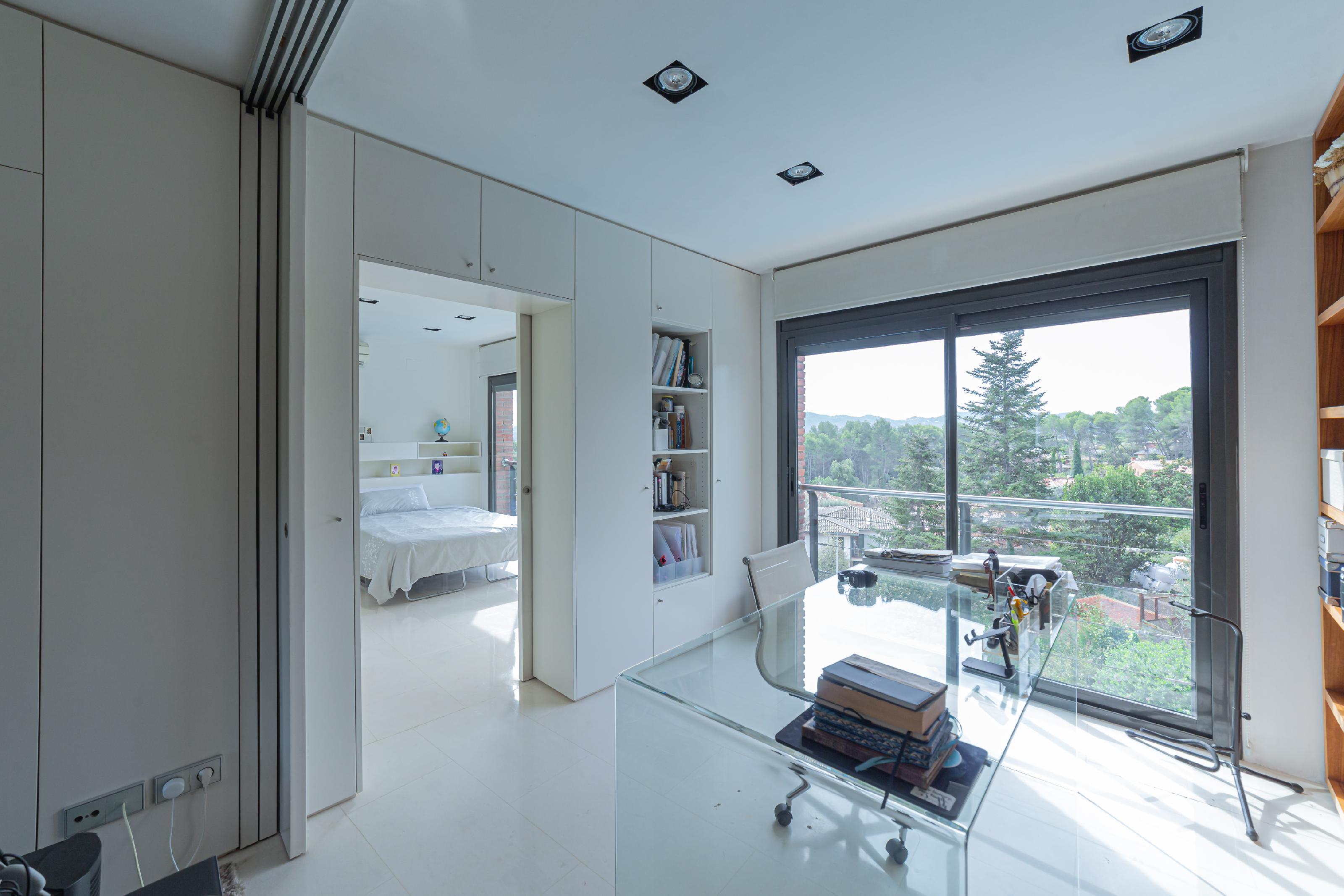 Esta maravillosa propiedad de tres plantas esta situada en un entorno privilegiado, con vistas excepcionales y fácil acceso al centro de Bellaterra. Cada rincón ha sido diseñado con los más altos estándares de calidad para ofrecer confort estilo y funcionalidad. Un hogar con una distribución inteligente, con espacios abiertos amplios y luminosos. En planta baja nos recibe un vestíbulo que da acceso a un gran salón-comedor donde encontramos una preciosa chimenea que hace que los momentos en casa sean más agradables y especiales. Gracias a sus grandes ventanales, toda la planta se inunda de luz natural, llevando acabo una sensación de libertad. En la misma planta tenemos una amplia cocina esquinera versátil que conecta con el jardín, que puede quedar integrada en el salón, gracias a su gran puerta corredera, puedes mantener la cocina abierta para facilitar el movimiento entre los dos espacios y en ocasiones especiales, como cenas o reuniones, puedes cerrarla para crear ambientes más definidos, dándole a cada área su propio protagonismo. En esta misma planta encontramos un gran baño de invitados completo, y una zona familiar con sala de televisión, sala de música y despacho que a su vez puede transformarse a partir de paneles correderos en un amplio dormitorio apropiado para invitados. En la planta superior se encuentran tres amplias habitaciones cada una con baño en suite, una amplia terraza y una nueva zona de estudio, despacho y sala de televisión, Nuevamente sus grandes ventanales nos permite disfrutar en toda esta planta de vistas privilegiadas al exterior. En planta inferior encontramos un amplio garaje, gimnasio, zona de lavado, y un baño completo. Toda la propiedad esta rodeado de un exuberante y cuidado jardín con piscina de horizonte infinito ideal para disfrutar del aire libre y la tranquilidad de la naturaleza y el agradable clima mediterráneo. Ubicación ideal en una zona bien comunicada que combina privacidad con la cercanía de todos los servicios por su proximidad a la ciudad.