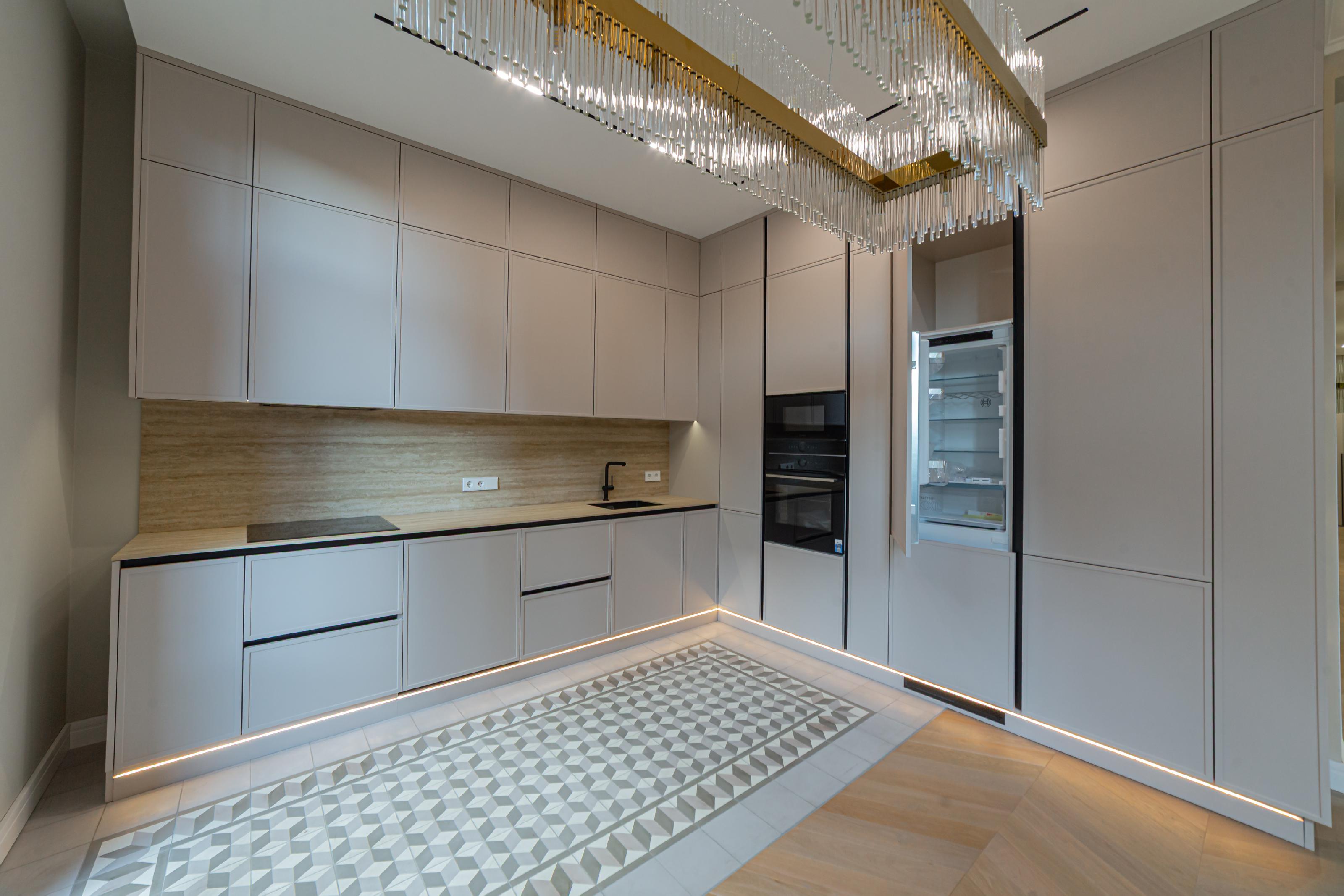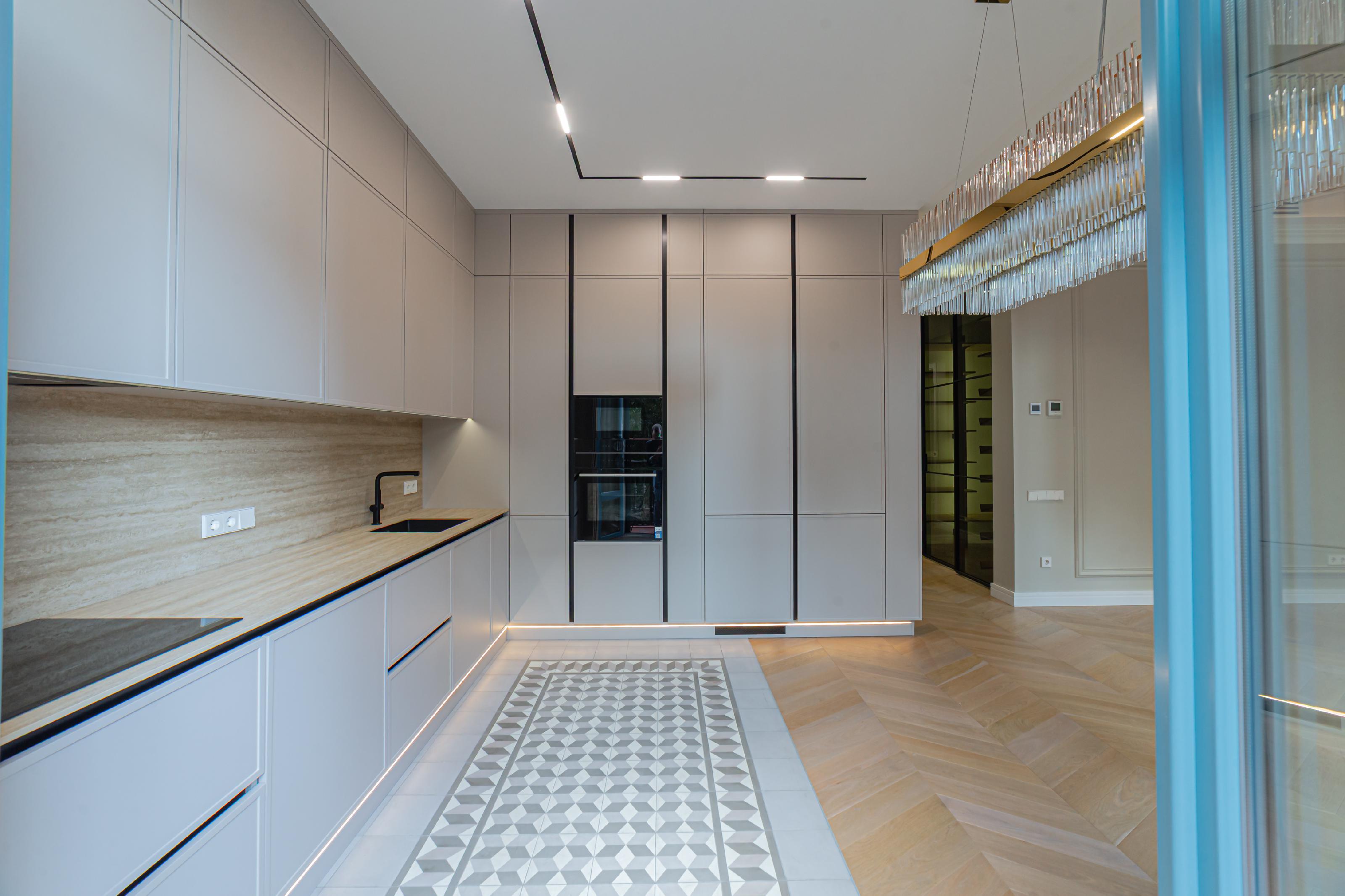 Cocina de alta gama equipada con electrodomésticos Bosch y muebles integrados.